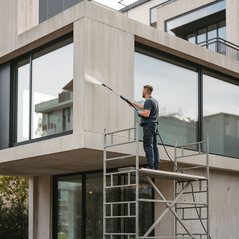 - Защита строений: регулярное мытье зданий удаляет вредные вещества, такие как пыль, плесень, лишайник и загрязнение воздуха, которые могут вызвать долгосрочные повреждения строения.