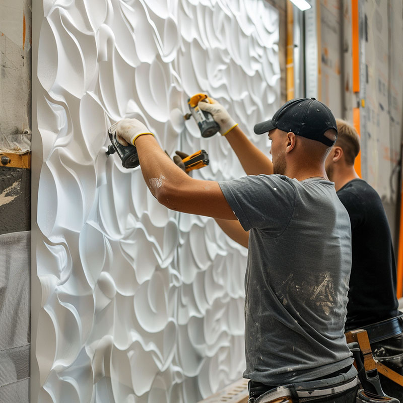 - Установка стеновых панелей: установка декоративных стеновых панелей для придания помещению текстуры и стиля.